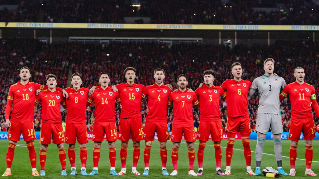CARDIFF, WALES – 24 MARCH 2022: Wales line up during the 2022 FIFA World Cup play-off semi-final between Cymru & Austria at the Cardiff City Stadium on the 24th of March 2022. (Pic by John Smith/FAW)