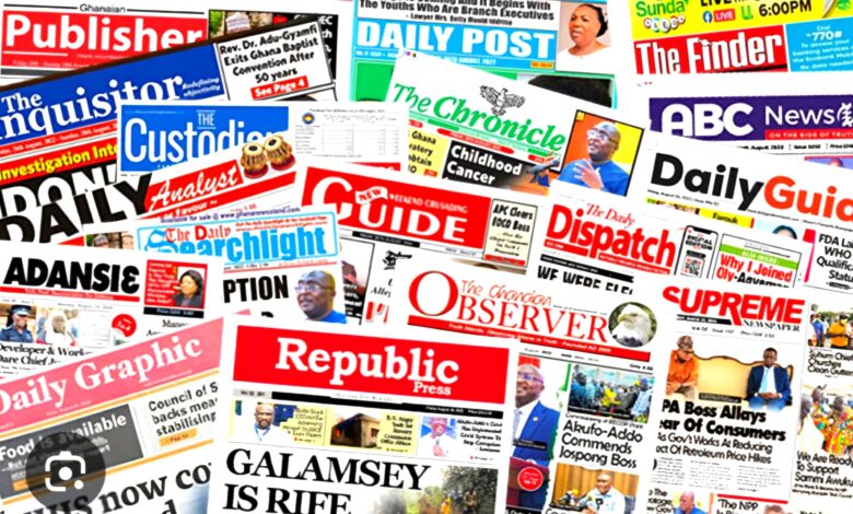 Here are the front pages of the major Newspapers trending in Ghana today, including Daily Graphic, Graphic Sports, The Ghanaian Times, Daily Dispatch, The New Publisher, The Daily Searchlight, The New Trust, Daily Post, The Mirror, Daily Times, Business and Financial Times, The New Republic, Punch Africa, The Insights, The Informer, The Ghanaian Point, The Inquisitor, and many more