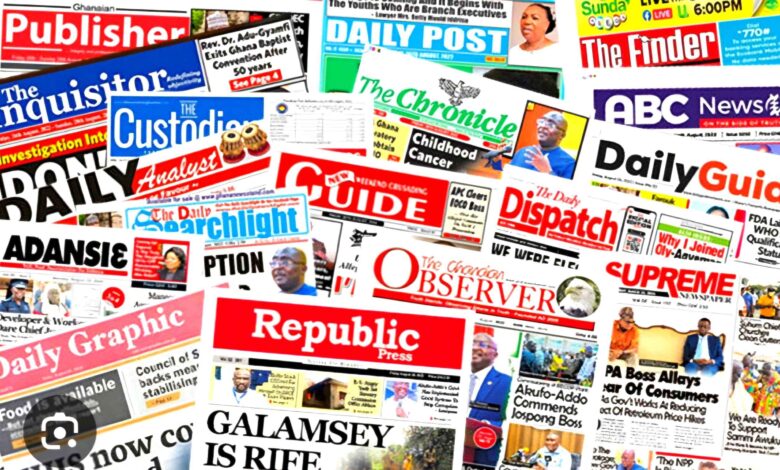 Here are the front pages of the major Newspapers trending in Ghana today, including Daily Graphic, The Ghanaian Times, The Daily Guide, Business and Financial Times, Graphic Sports, Daily Dispatch, The New Publisher, The Daily Searchlight, The New Trust, Daily Post, The Mirror, Daily Times, The New Republic, Punch Africa, The Insights, The Informer, The Ghanaian Point, The Inquisitor, and many more
